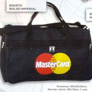 Tela cordura, 1 bolsillo mlateral abierto y 1 bolsillo lateral con cierre, 2 manijas y tira regulable, medida 50x30x30 cms.