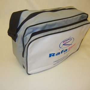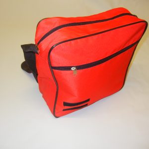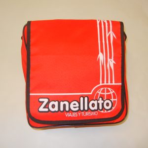 Tela cordura, 1 bolsillo con cierre, correa regulable, medida 33x25x16 cms.