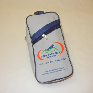 Tela cordura, 1 bolsillo externo con cierre, manija de mano 17x32x12 cms.