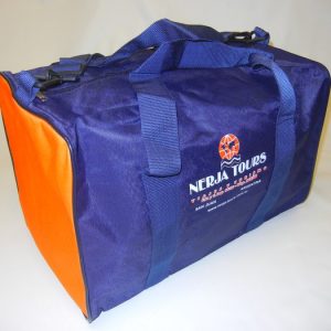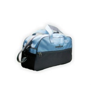 Tela cordura, 1 bolsillo frontal con cierre, correa regulable y manijas reforzadas, medida 50X25X21 cms.