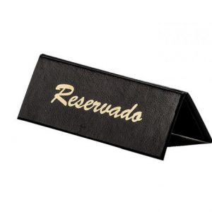 Cartel de reservado en eco cuero, grabado en dorado. Medidas: 4 x 13 cms.