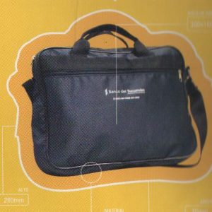 Tela cordura, 2 manijas y correa regulable, 1 bolsillo externo con cierre,medida38x28x7 cms.